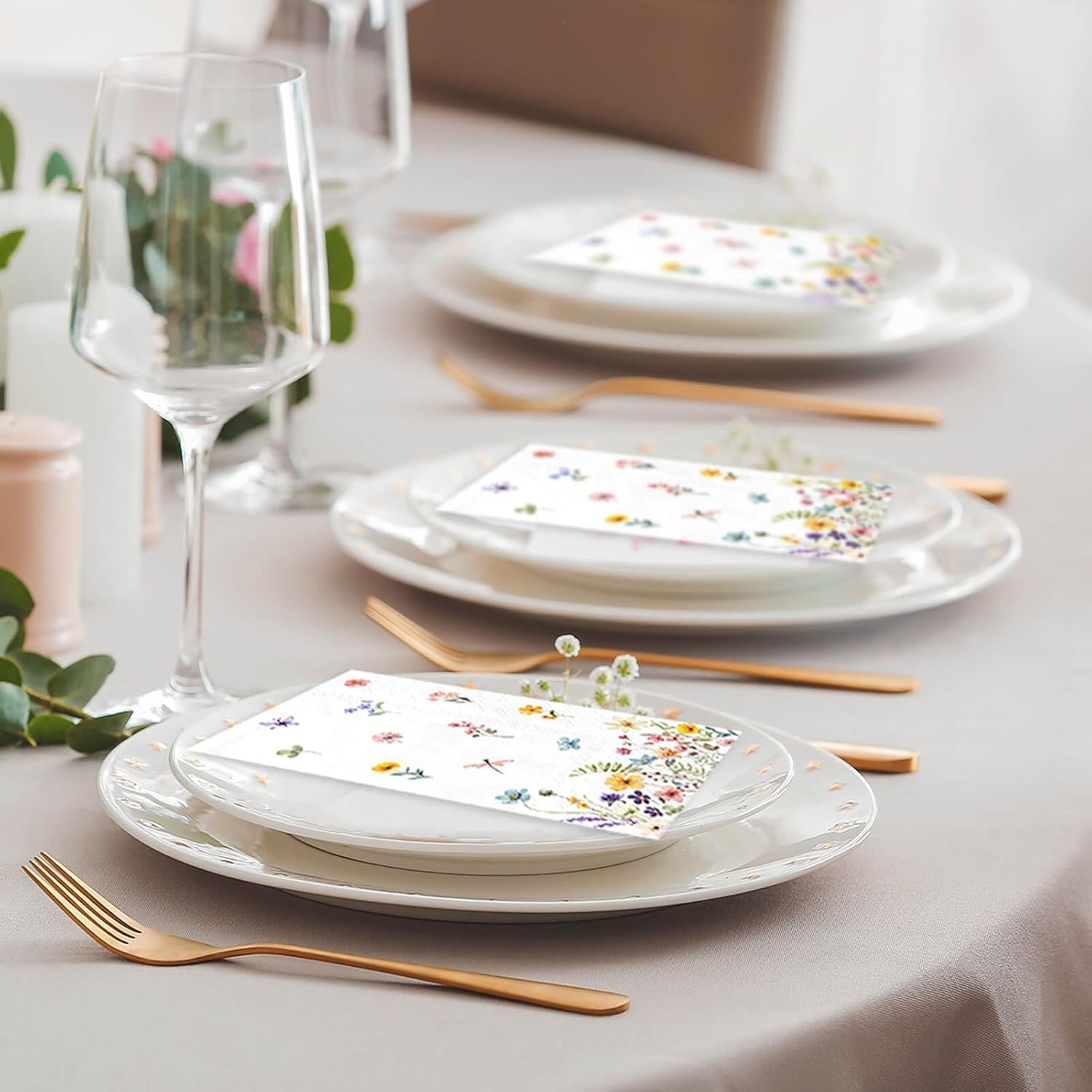 100PCS Spring Wildflower Paper Napkins Disposable Bathroom Hand Towels Green Wild Floral Guest Napkins Decorative Dinner Napkins for Spring Home Holiday Party Supplies