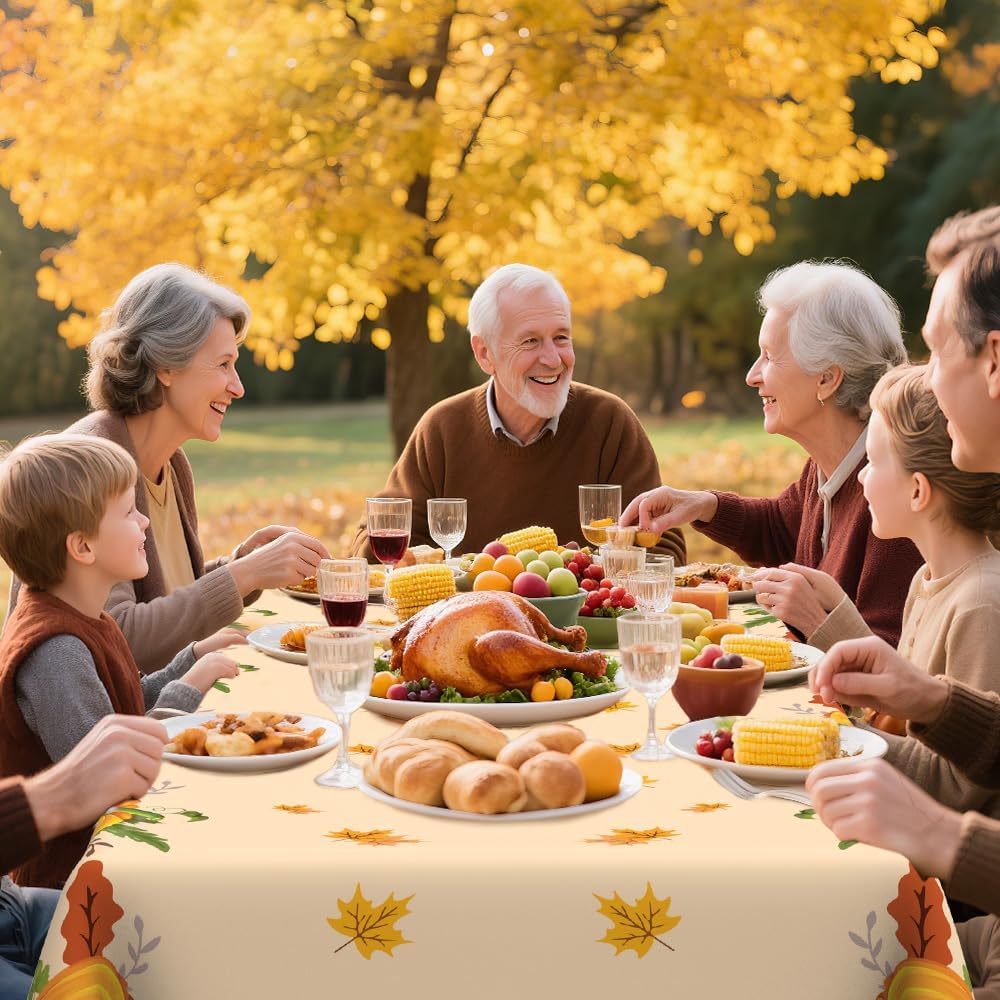 - Design: The Thanksgiving tablecloth features autumn maple leaves and pumpkins as decorative elements, with a beautiful appearance and suitable for decorating party tables