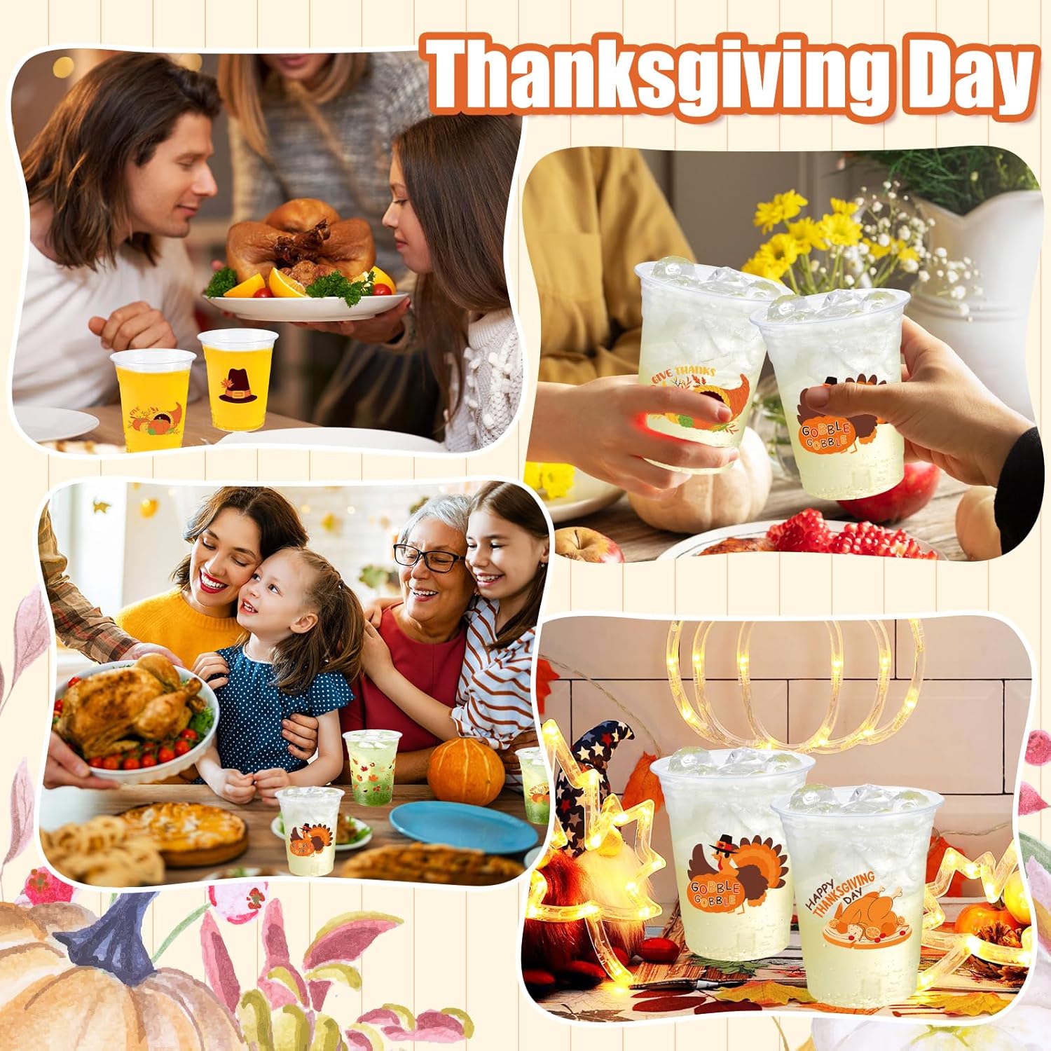 - Package Includes: This set contains 50 Thanksgiving cups, providing ample supply for medium to large gatherings. It is perfect for thanks giving decoration, fall festival decorations, holiday celebrations or any special event. Each cup holds 12oz, ideal for serving cider or soft drinks. You can also use them as fall snack cups