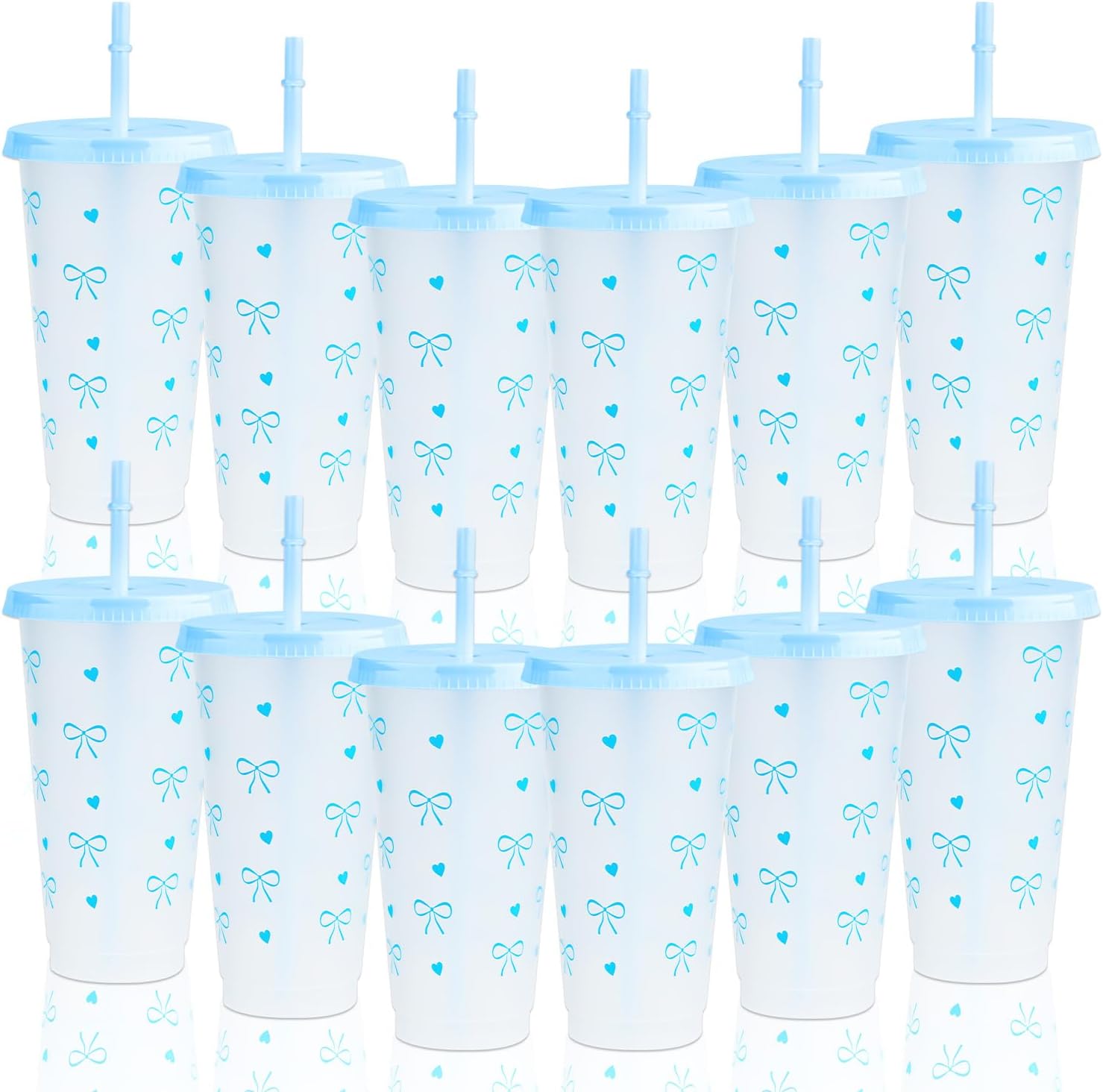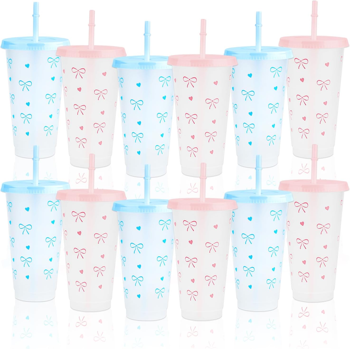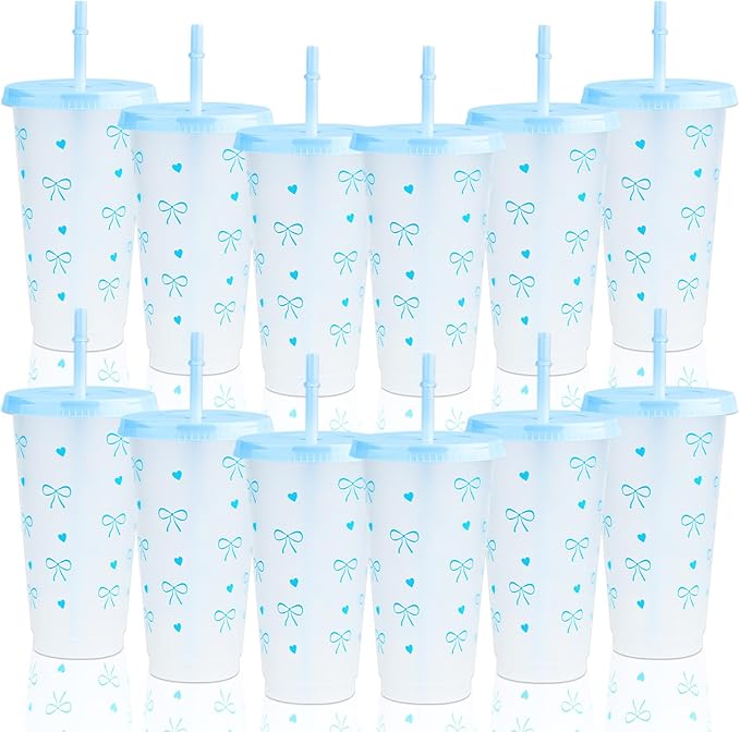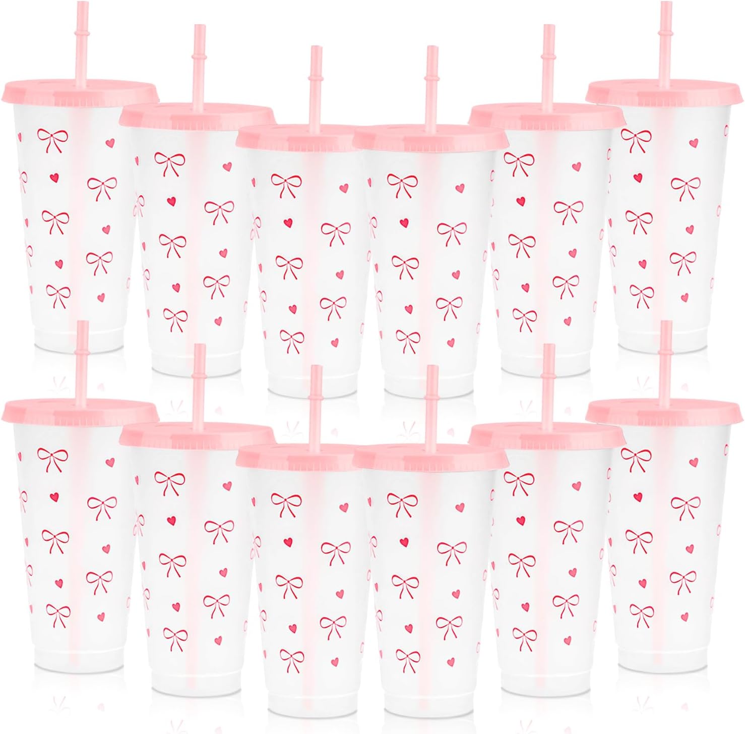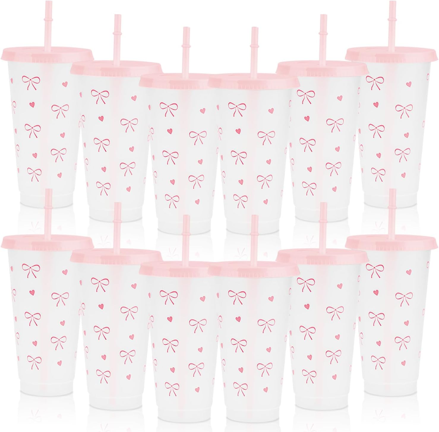 - Complete Bow Plastic Cups Set: 12 charming Bow Plastic Cups come with matching lids and straws, perfect for parties to serve guests in style.