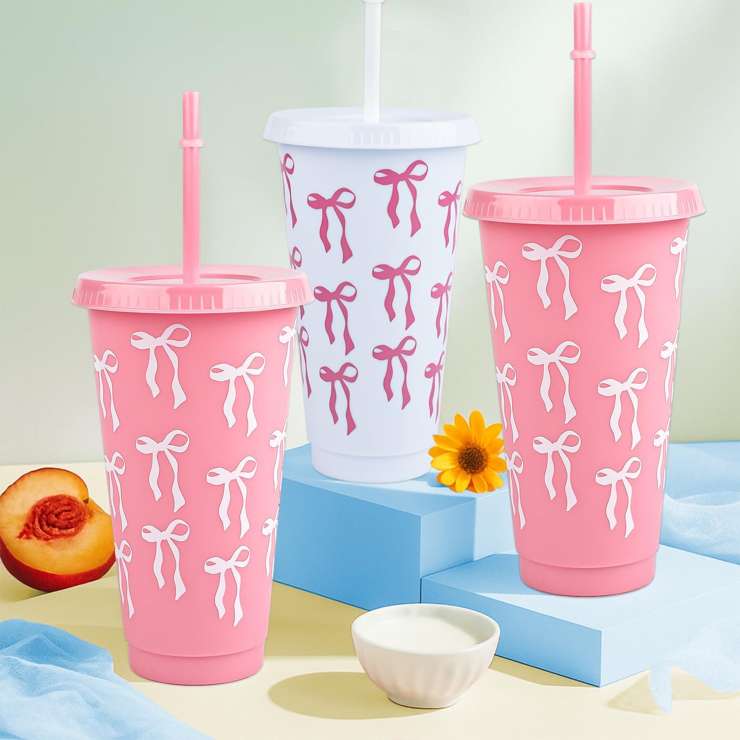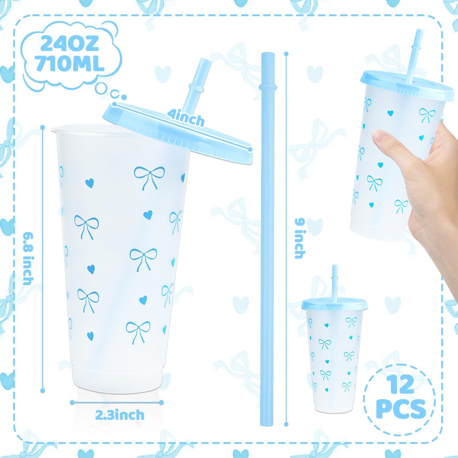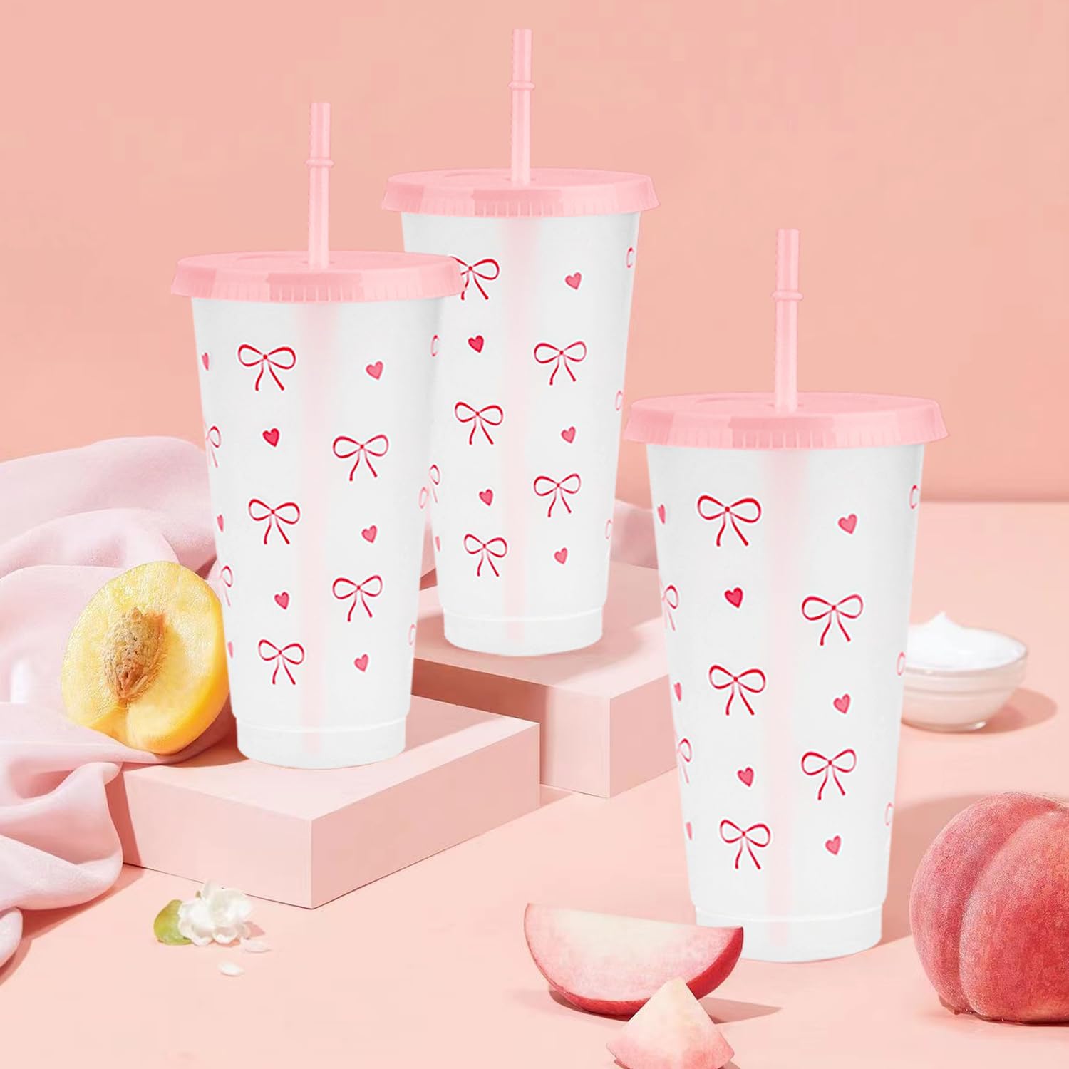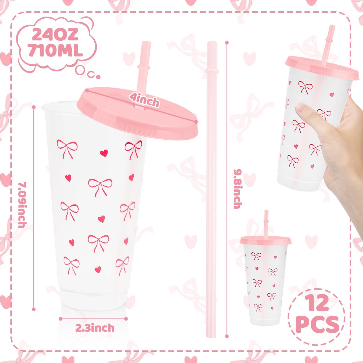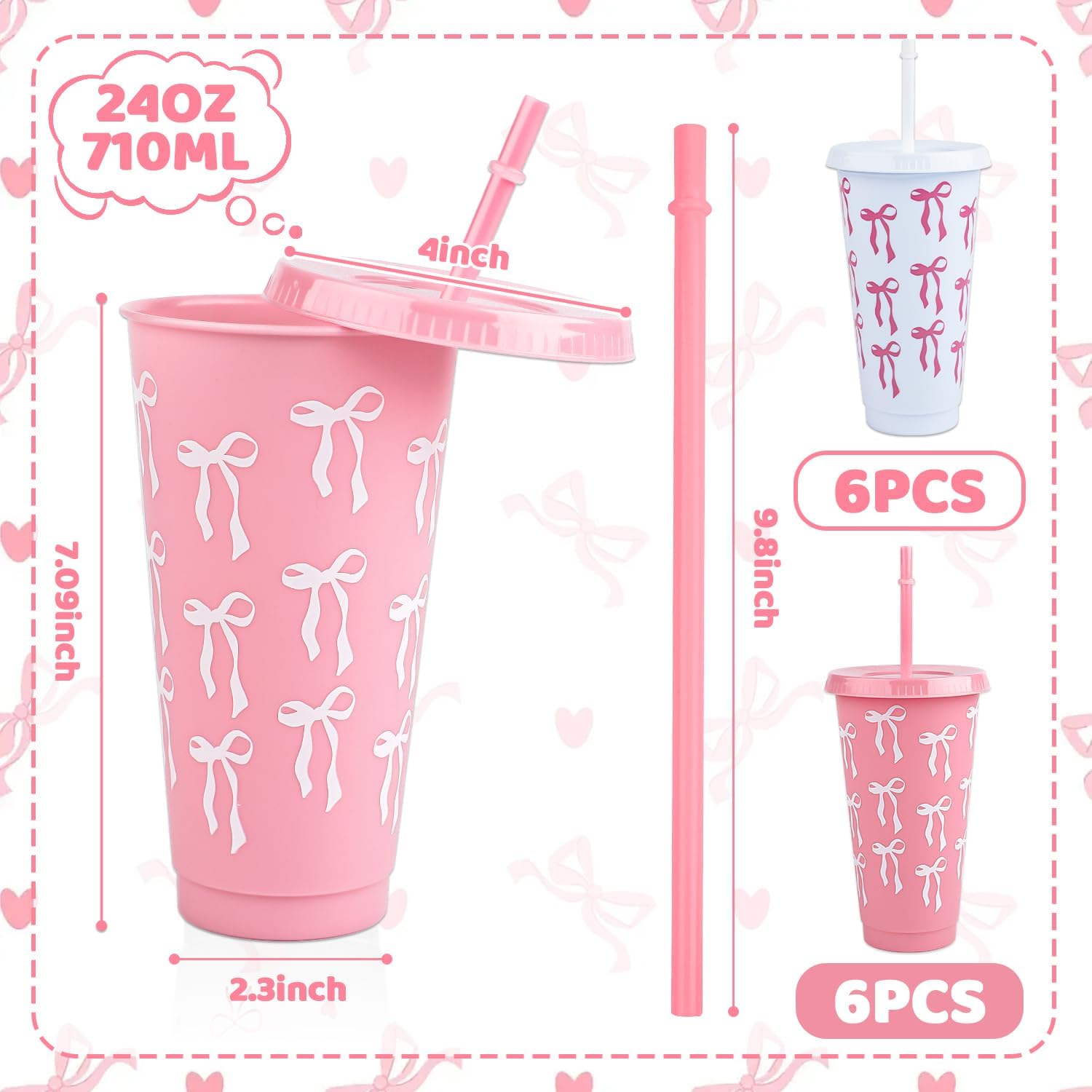 - Complete Bow Plastic Cups Set: 12 charming Bow Plastic Cups come with matching lids and straws, perfect for parties to serve guests in style.