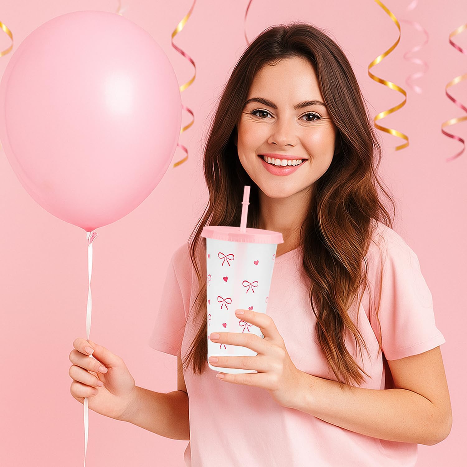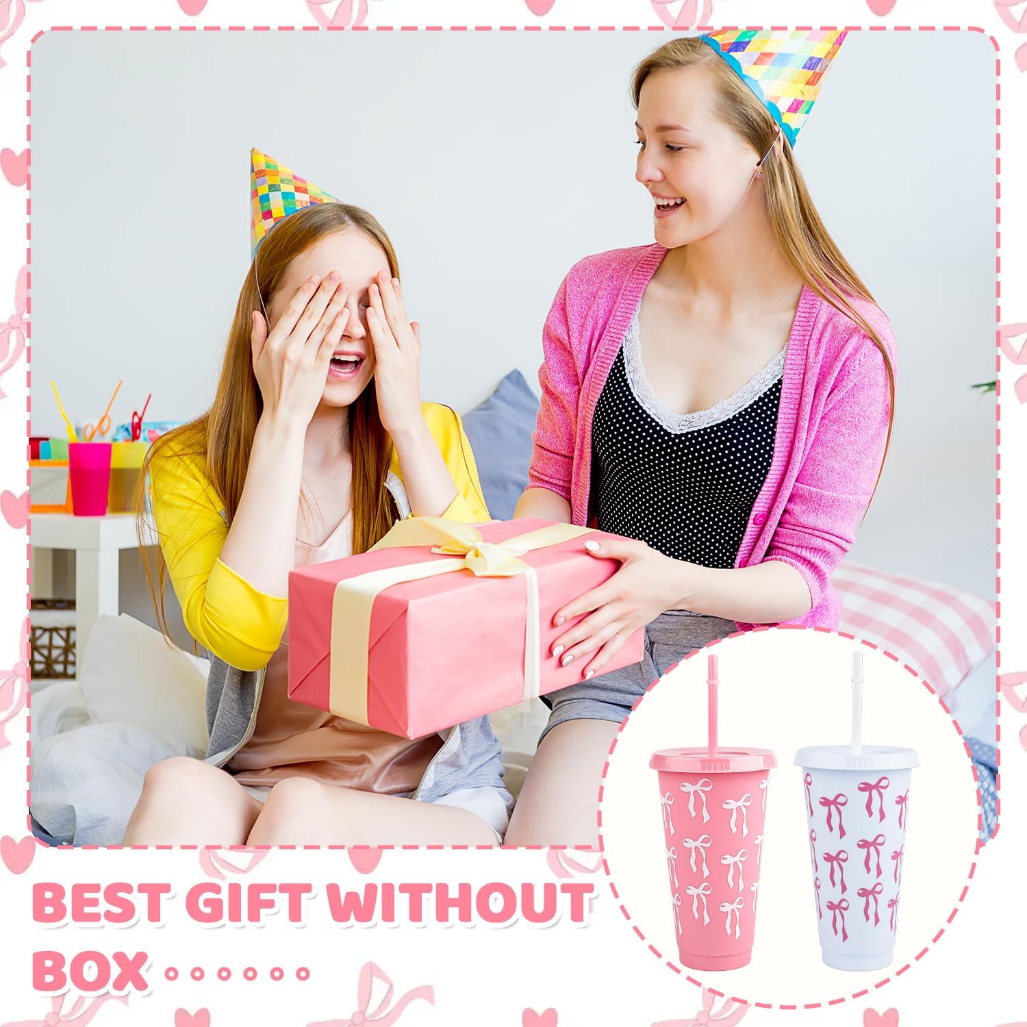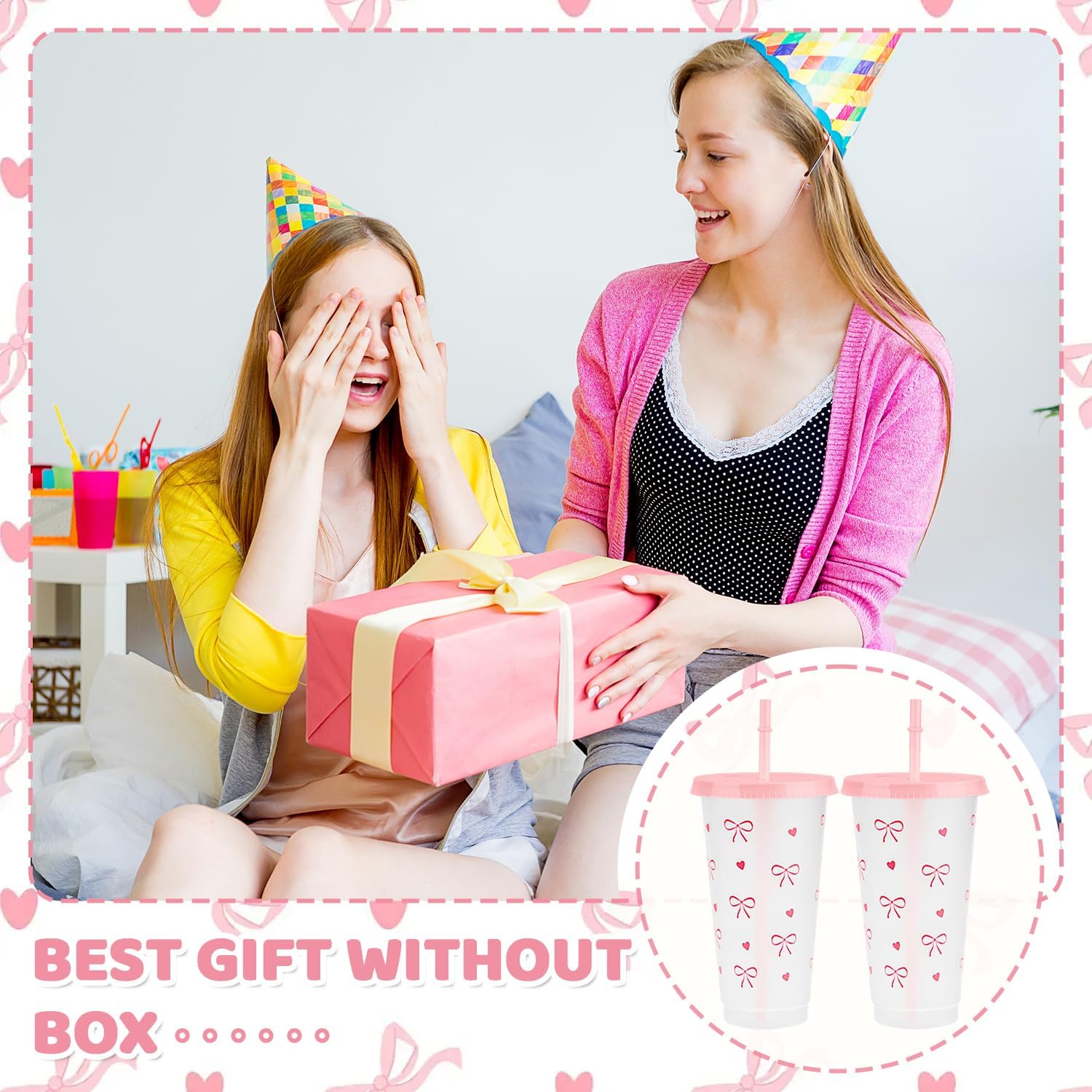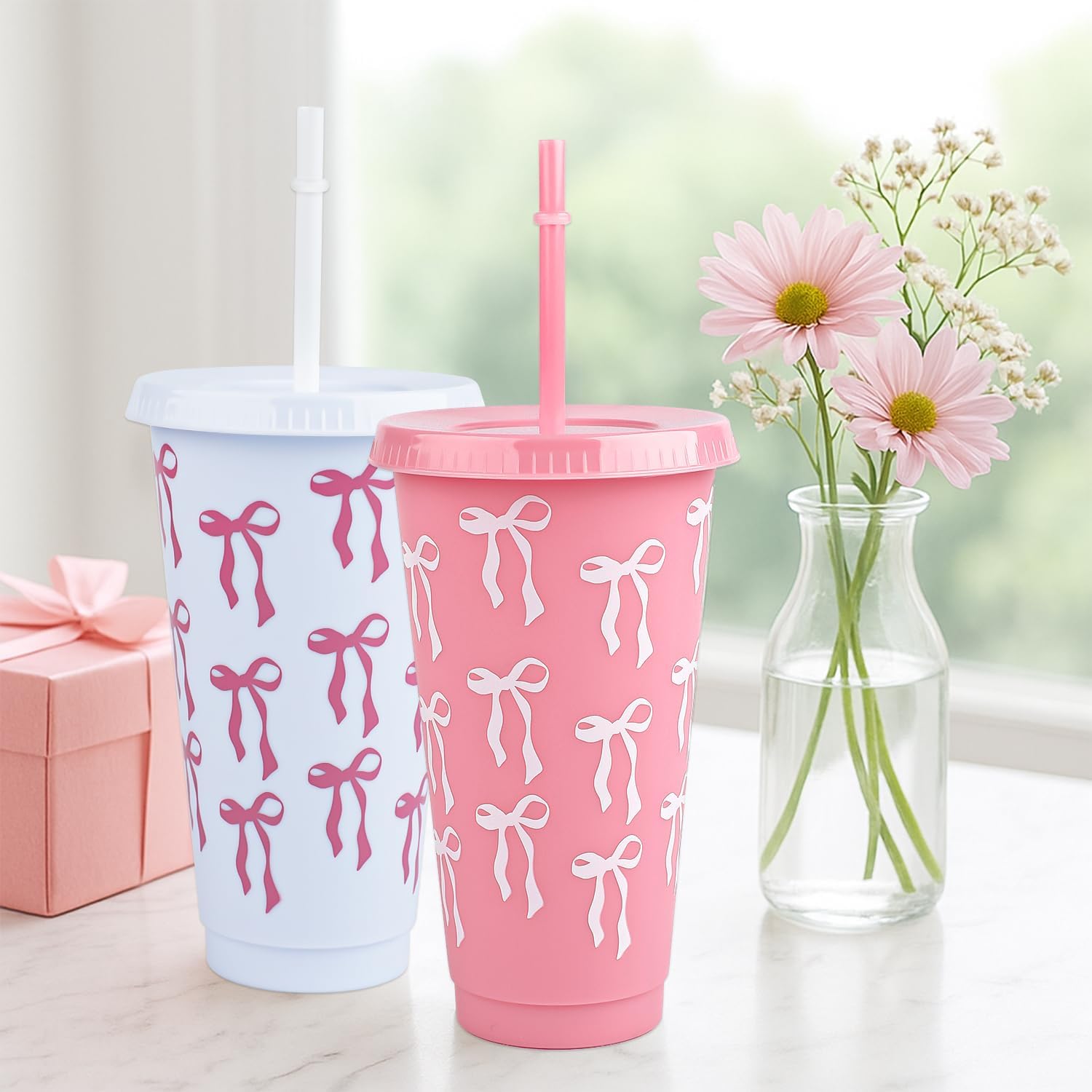 - Complete Bow Plastic Cups Set: 12 charming Bow Plastic Cups come with matching lids and straws, perfect for parties to serve guests in style.