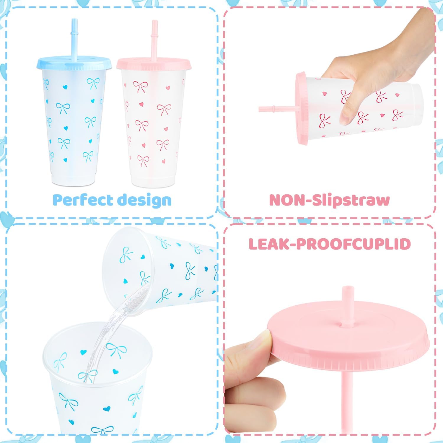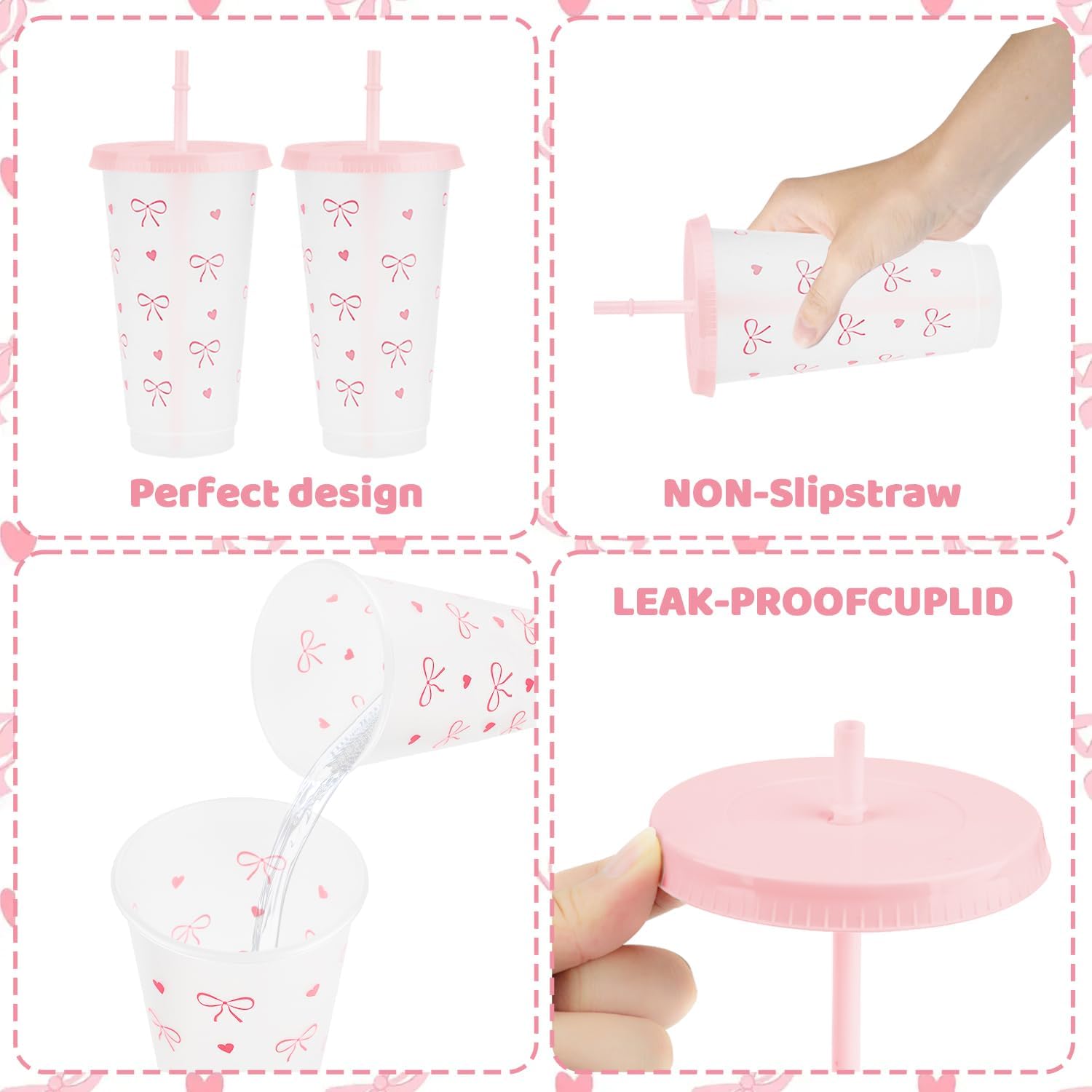 - Generous Capacity Bow Plastic Cups: 24-ounce size holds plenty of drinks, reducing refills, while secure lids prevent messy spills.